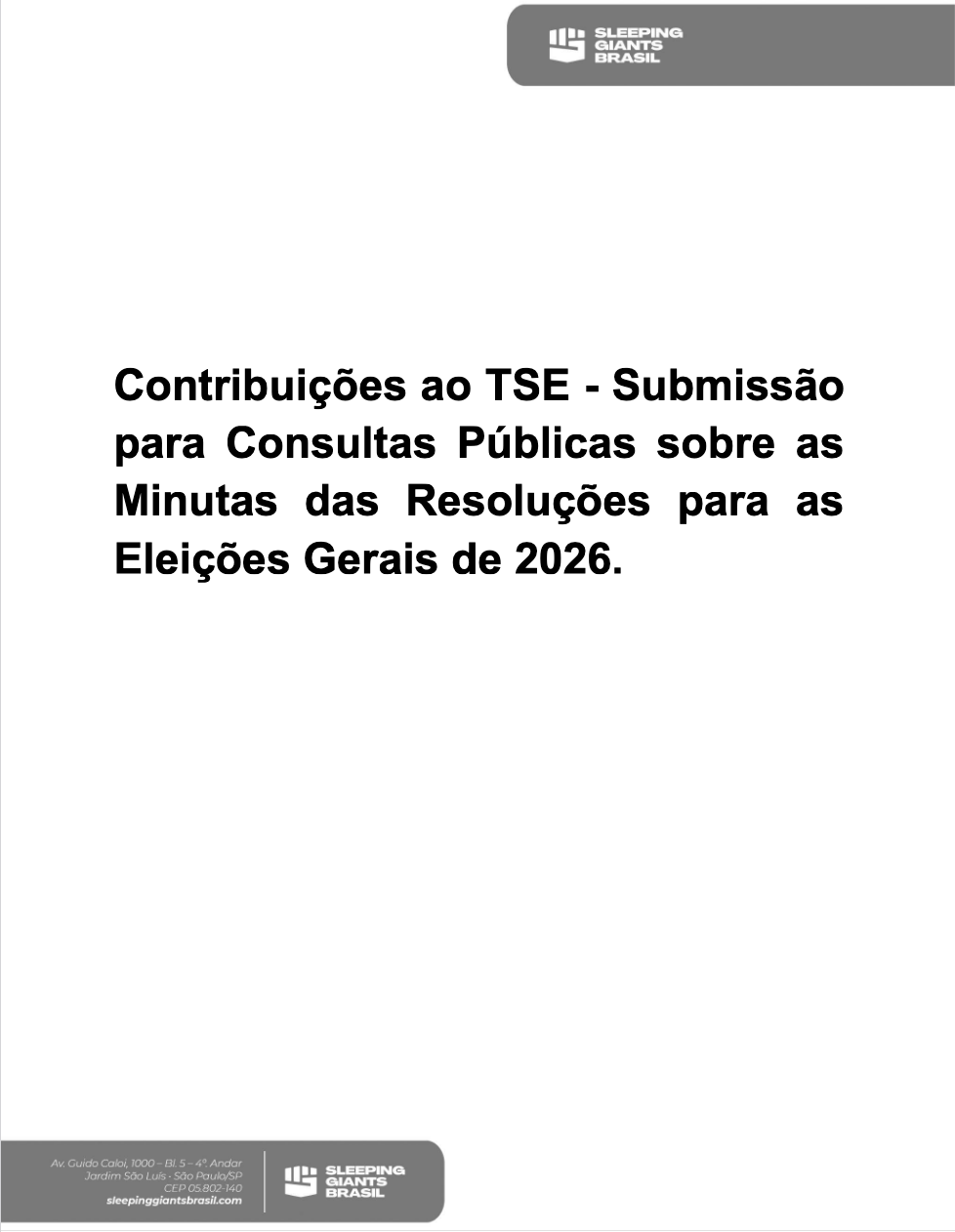 Na Biblioteca do Sleeping Giants Brasil, você encontrará uma coleção de relatórios, notas técnicas e pesquisas desenvolvidas pelo nosso time. Esses materiais são fundamentais para entender como combater a desinformação, um desafio crescente em nosso país.